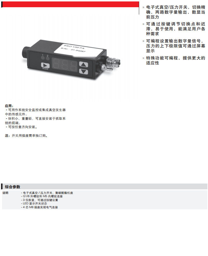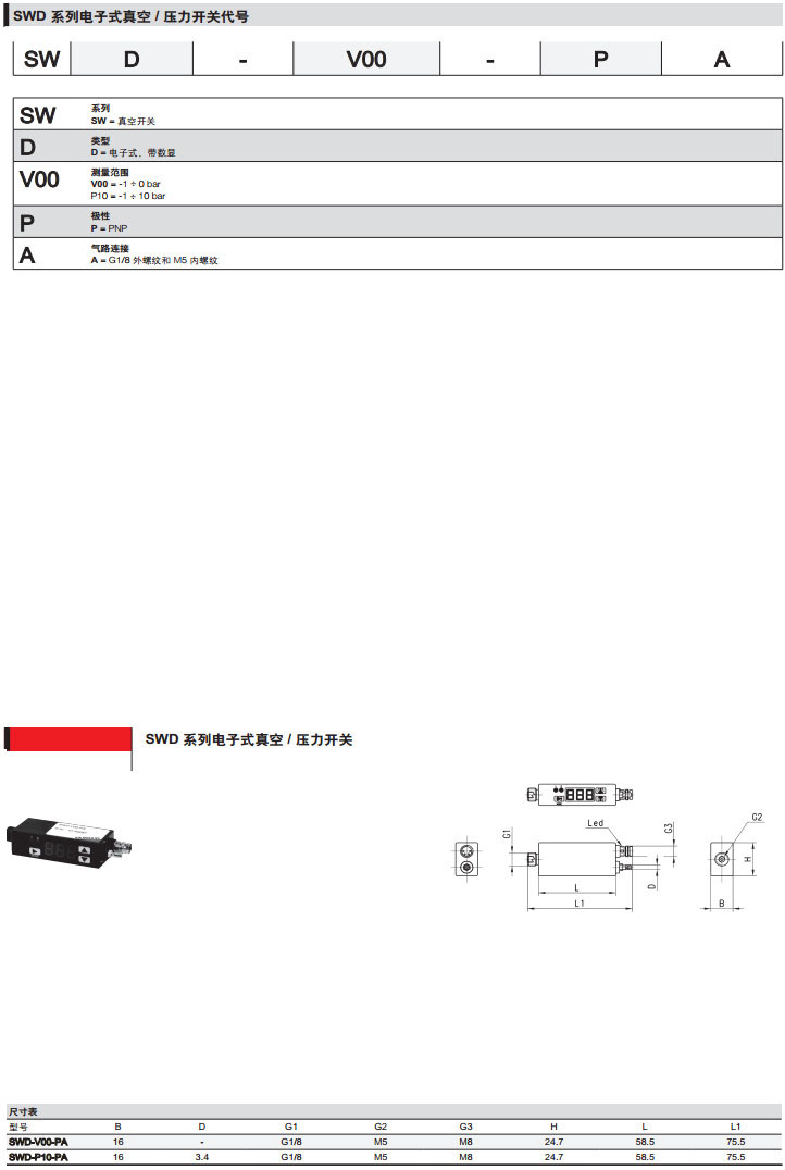 SWD-V00-PA,SWD-P10-PA,camozzi壓力開關