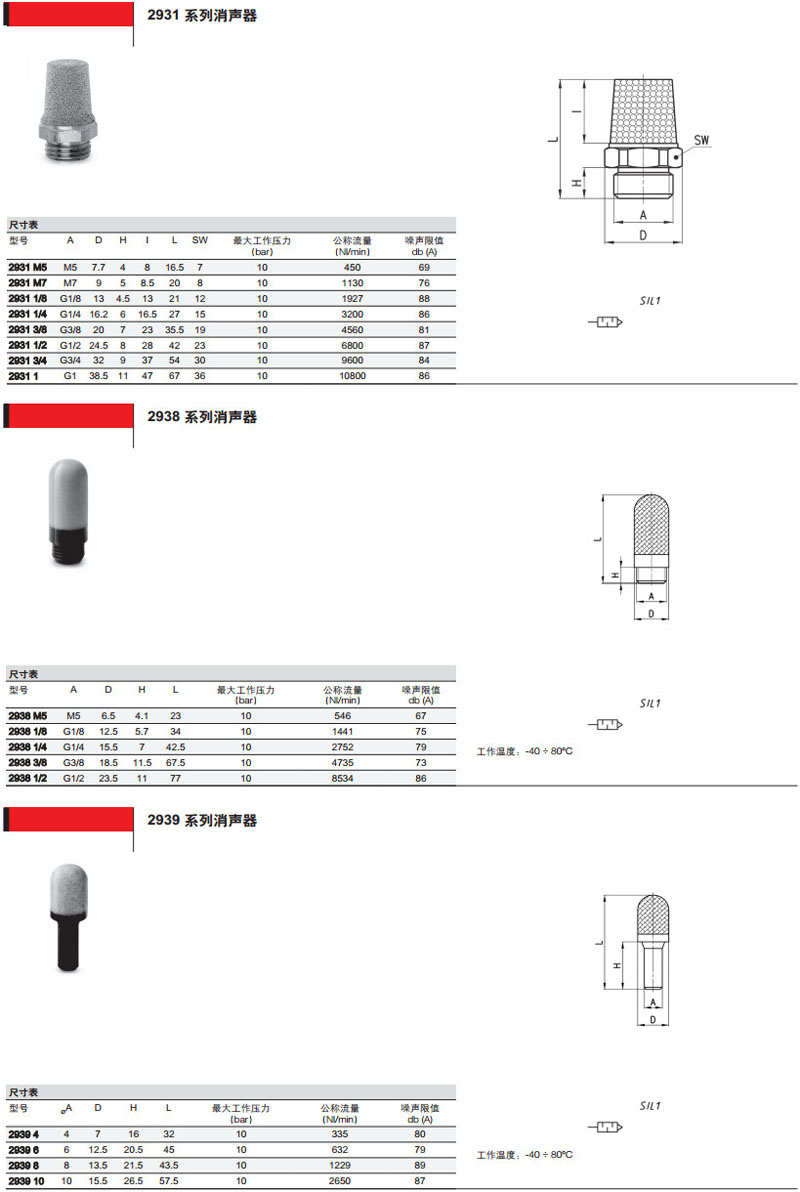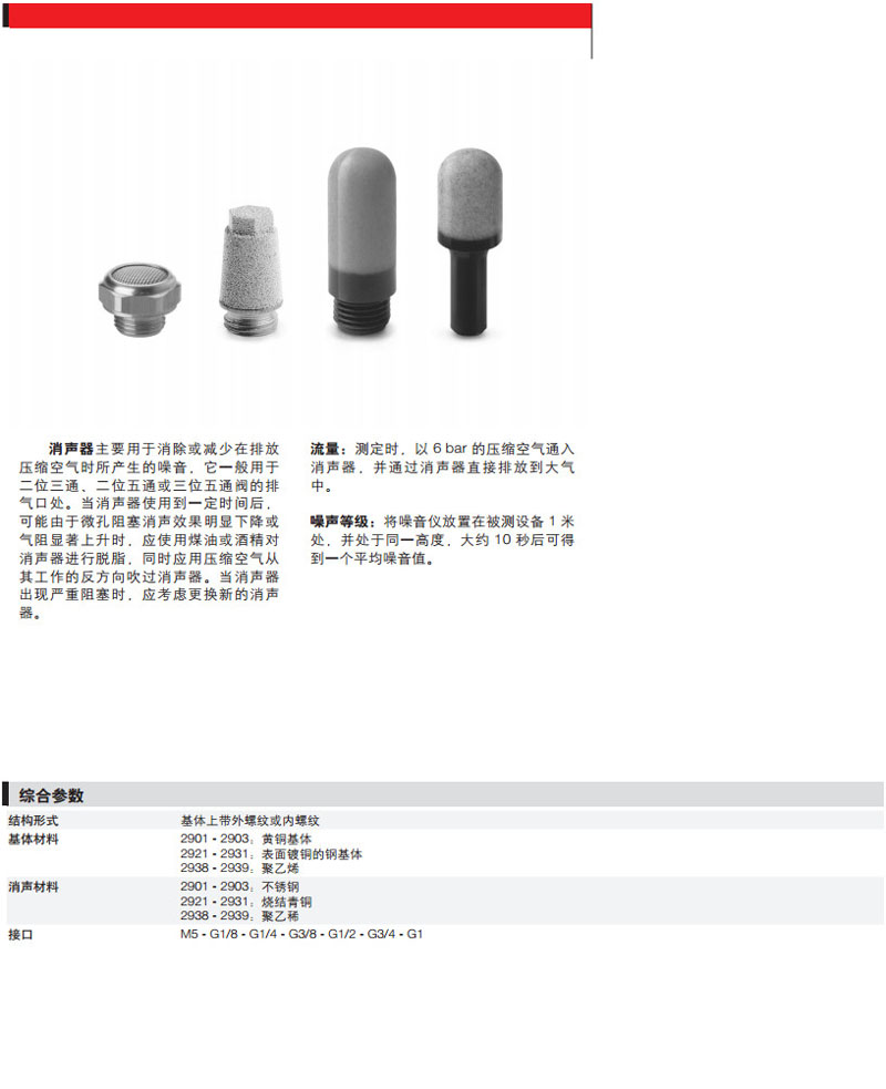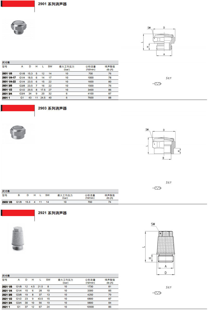 2901-1/8,2903-1/8,2921-1/4,2931-M5,2938-1/2,2939-4,camozzi消音器