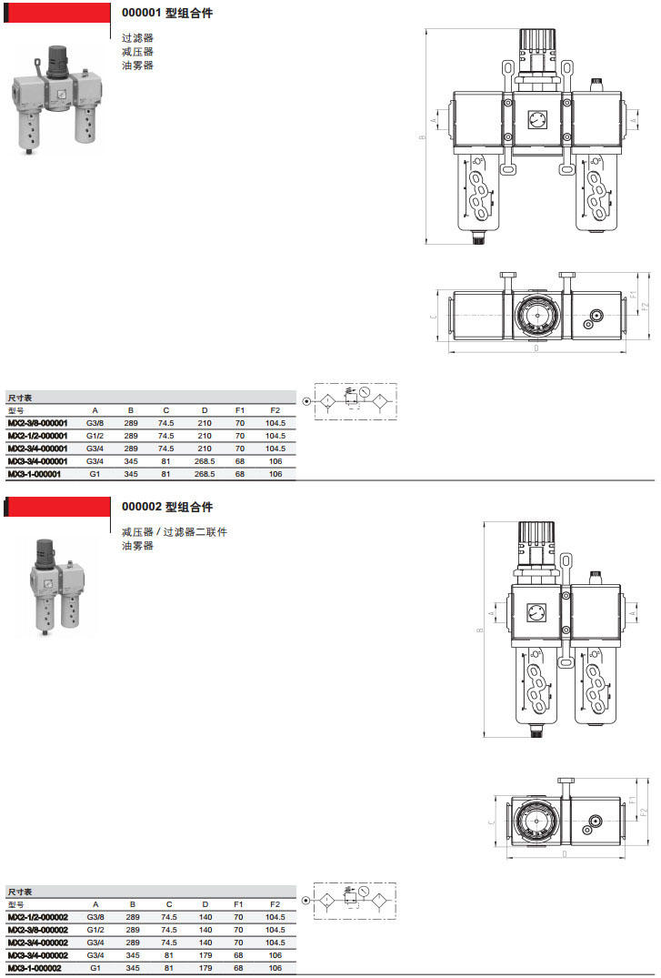 MX2-3/8-000001,MX3-1/2-000003,MX2-3/4-000010camozzi氣源處理裝置組合件