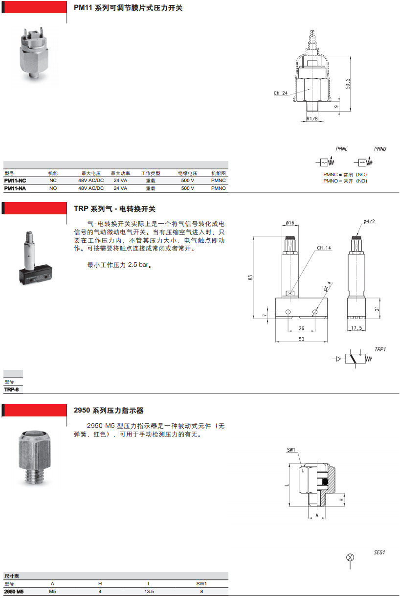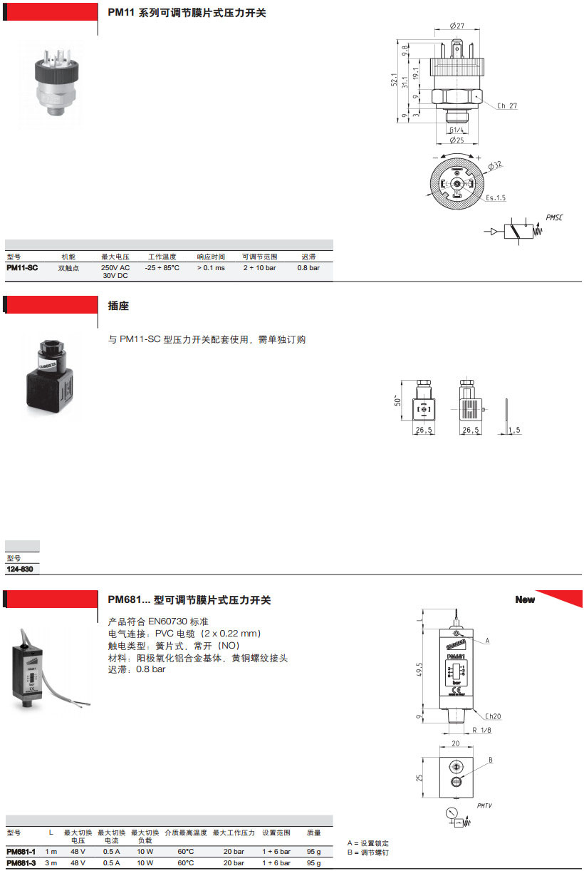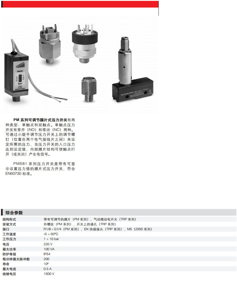 PM11-NC,PM11-NA,TRP-8,2950-M5,PM11-SC,124-830,PM681-1,PM681-3,camozzi壓力開關(guān)