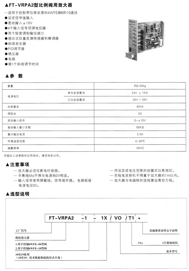FT-VRPA2-1-1X/VO/T1,比例閥用放大器