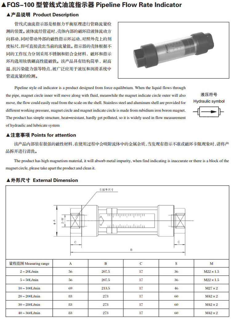 FQS-100,管線式油流指示器