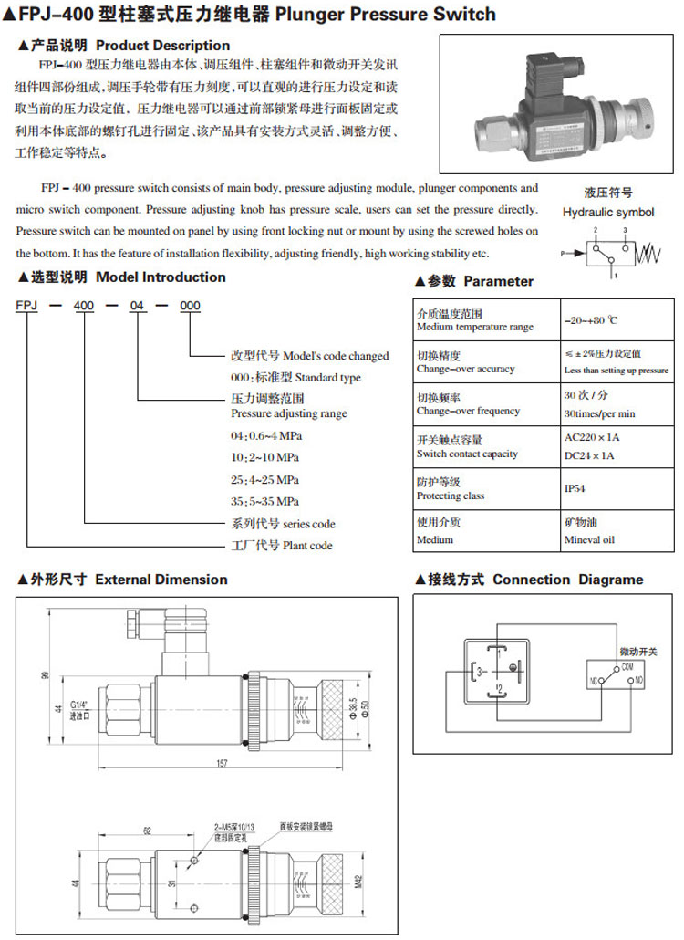 FPJ-400-04,FPJ-400-10,FPJ-400-25,FPJ-400-35,柱塞式壓力繼電器