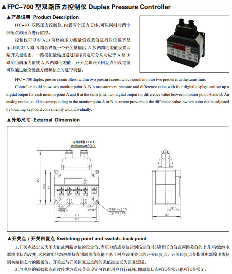 FPC-700-1.6,FPC-700-04,FPC-700-10,FPC-700-25,FPC-700-40,雙路壓力控制儀 |