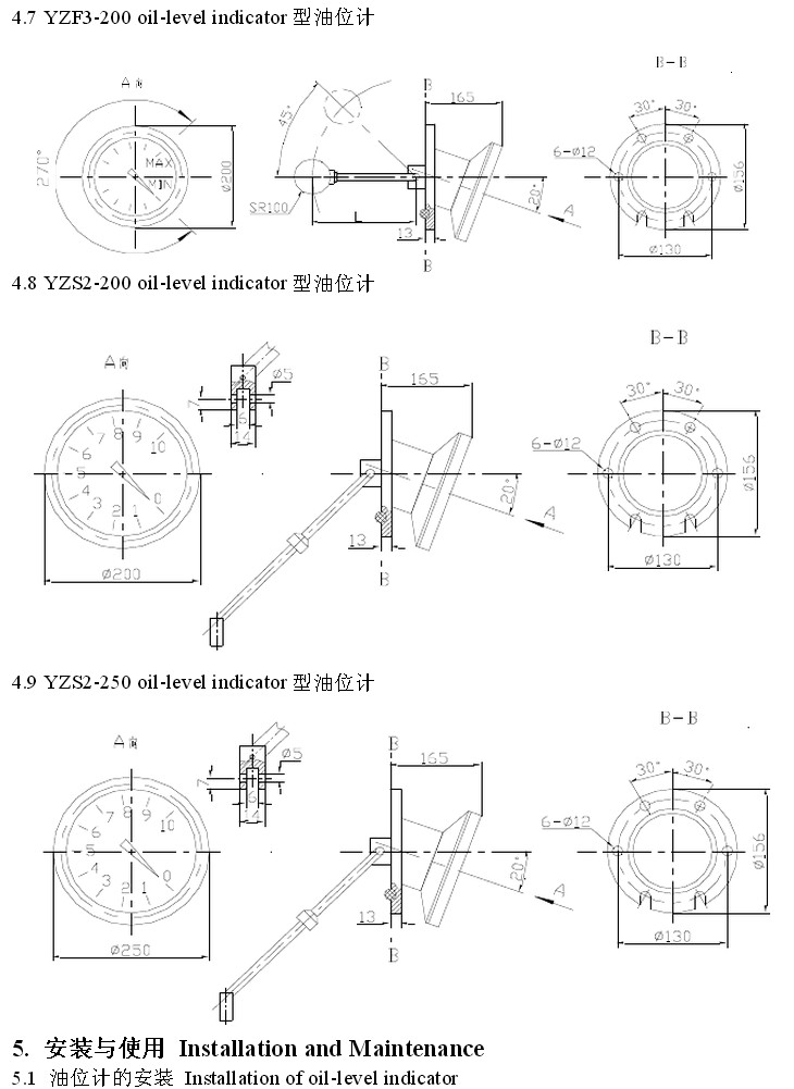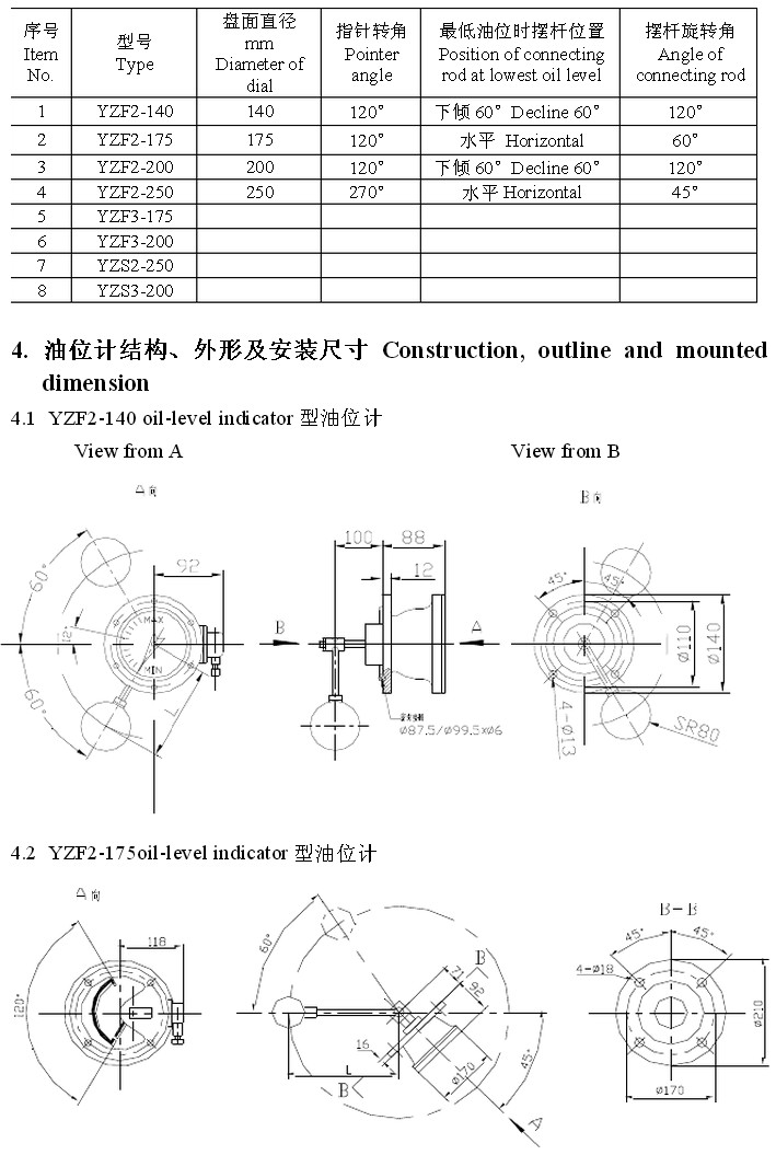 YZF2-140,YZF2-175,YZF2-200,YZF2-250,YZS3-250,YZS3-200,油位計