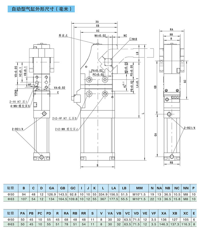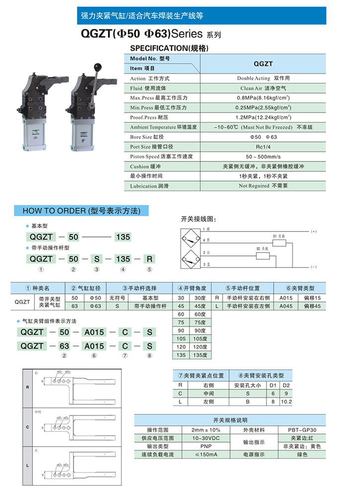 QGZT-50,QGZT-63,QGZT-50-30,QGZT-63-30,QGZT-50-S-30,QGZT-63-S-30,強力加緊氣缸 |