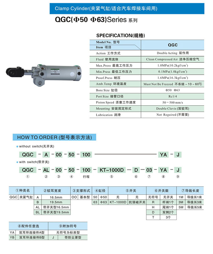 QGC-A-OO-50,QGC-A-OO-63,QGC-B-OO-50,QGC-B-OO-63,QGC-AL-OO-50,QGC-BL-OO-63,圓形夾緊氣缸