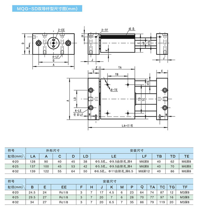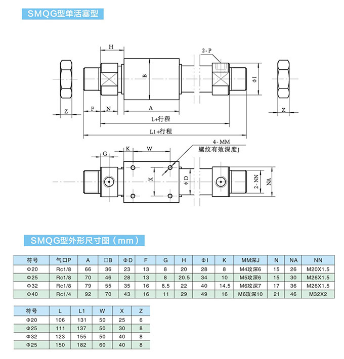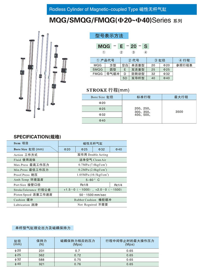 MQG-E,MQG-D,MQG-SD,SMQG-E,SMQG-D,SMQG-SD,FMQG-E,FMQG-D,FMQG-SD,MQG-20-200,無桿氣缸 |
