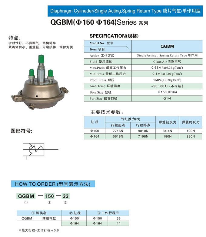 QGBM-150-33,QGBM-164-44,QGBM-150-44,QGBM-164-33,膜片氣缸