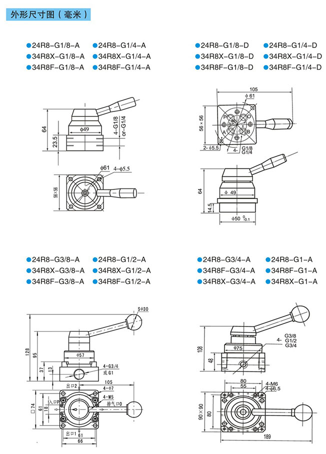 24R8-G1/8,24R8-G1/4,24R8-G3/8,24R8-G1/2,24R8-G3/4,24R8-G1,24R8-G1/8-A,4通手動換向閥 |