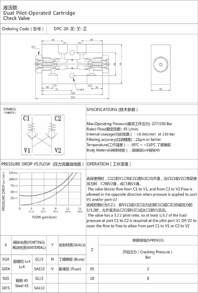 DPC-20-5GA,DPC-20-10TA,DPC-20-5GS,DPC-20-10TS,液壓鎖