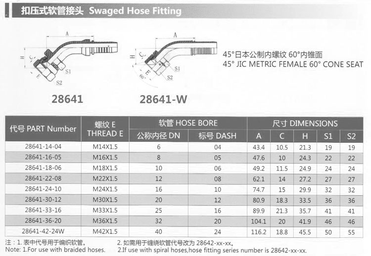 28641-14-04,28641-16-05,28641-18-06,28641-22-08,28641-30-12,28641-42-24W,扣壓式軟管接頭