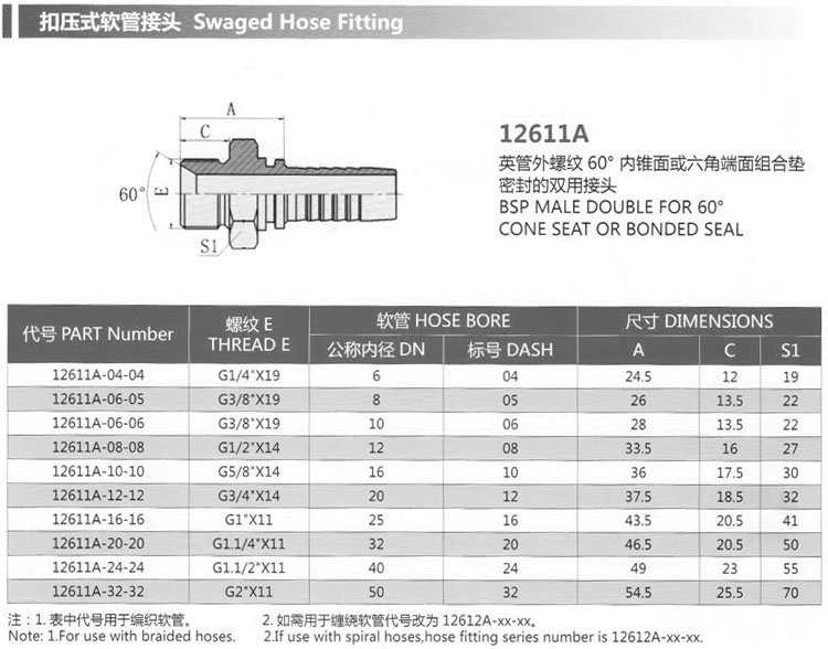 12611A-04-04,12611A-06-05,12611A-08-08,12611A-10-10,12611A-24-24,12611A-32-32,扣壓式軟管接頭