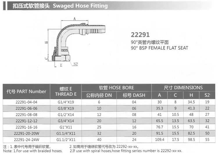 22291-04-04,22291-06-06,22291-08-08,22291-12-12,22291-16-16,22291-20-20W,扣壓式軟管接頭