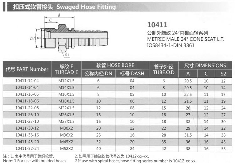 10411-12-04,10411-26-10,10411-30-12,10411-45-20,10411-52-24,扣壓式軟管接頭