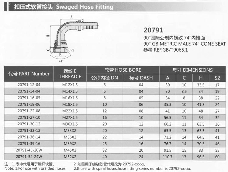 20791-12-04,20791-22-08,20791-33-12,20791-45-20W,20791-52-24W,扣壓式軟管接頭