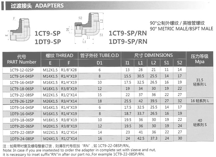1DT9-14-04SP,1DT9-16-04SP,1DT9-18-06SP,1CT9-18-06SP,1CT9-22-08SP,1CT9-26-12SP,