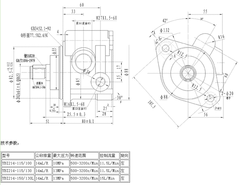 YBZ214-115/100,YBZ214-115/130,YBZ214-150/130L,葉片泵