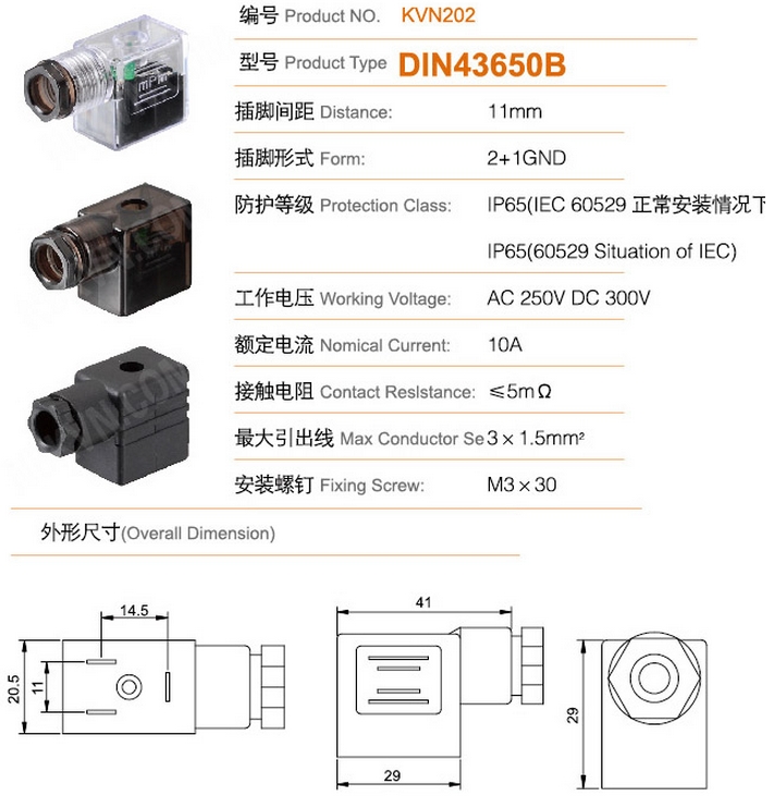 DIN43650B,電磁線圈