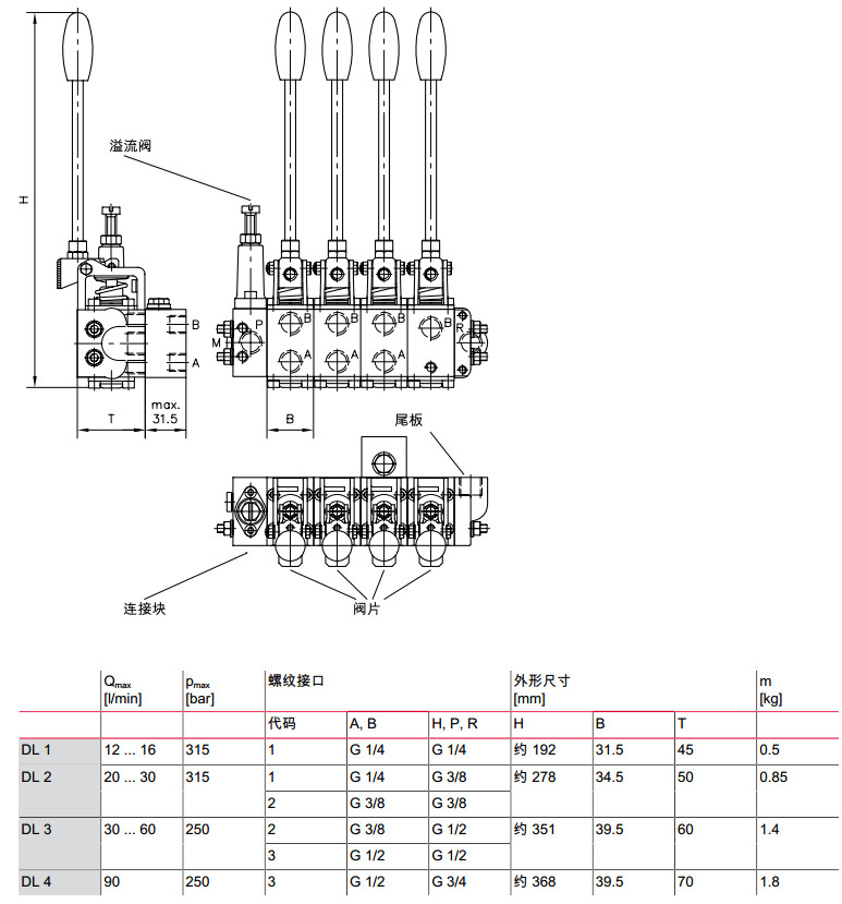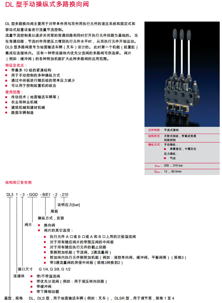 DL11-3-GGD-B/E1,DLSR31-3-GGD-B/E1,DLS41-3-GGD-B/E1,手動操縱式多路換向閥