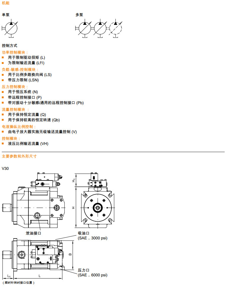 V30D-045LSFN-1,V30D-075RSFN-1,V30D-095RSFE-1,V30D-115RSFV-1,變量軸向柱塞泵 |