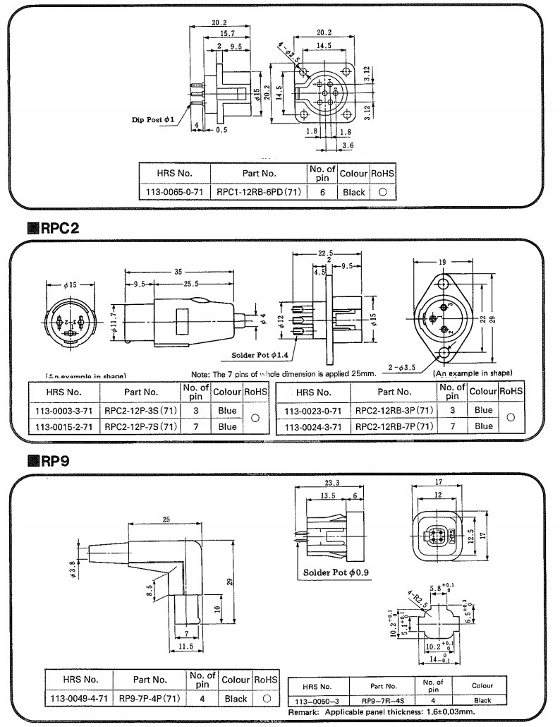RPC1-12P-6S,RPC1-12RB-6P,RPC2-12P-7S,RPC2-12RB-3P,RP9-7R-4S,hirose連接器 |