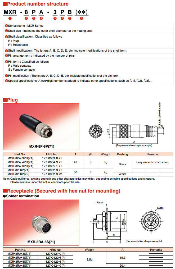 MXR-8PA-3PB,MXR-8PA-4PB,MXR-8PA-6PB,MXR-8P-8P,MXR-8P-8P,MXR-8RA-3S,hirose連接器