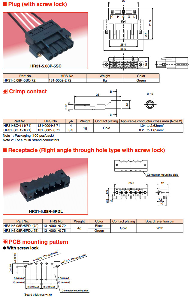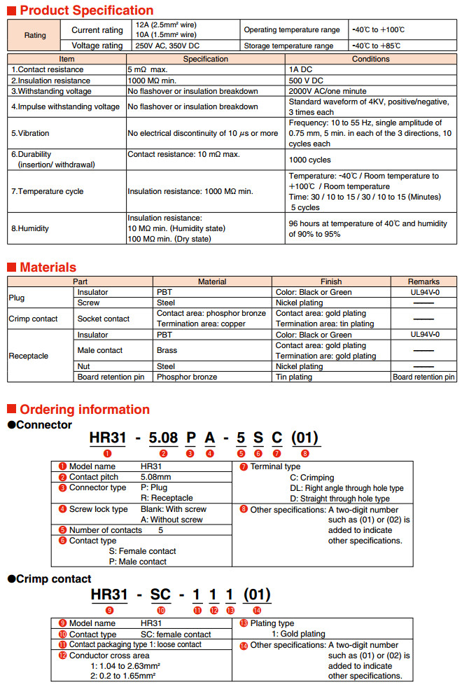HR31-5.08P-5SC,HR31-SC-111,HR31-SC-121,HR31-5.08R-5PDL,