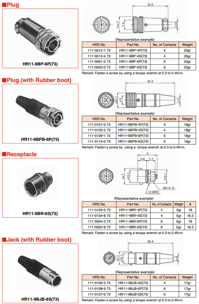 HR11-9BP-4P,HR11-9BP-4S,HR11-9BP-6P,HR11-9BP-6S,HR11-9BPB-4P, |