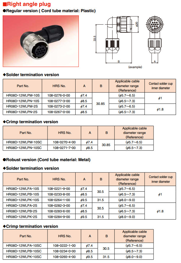 HR08D-12WLPM-10S,HR08D-12WLPN-10S,HR08D-12WLPK-2S,HR08D-12WLPA-10SC, |