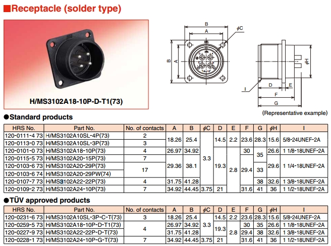 H/MS3102A10SL-4S,H/MS3102A18-10S,H/MS3102A20-29S,hirose連接器
