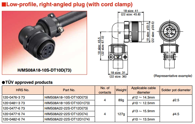 H/MS08A18-10S-DT10D,H/MS08A18-10S-DT10D1,H/MS08A22-22S-DT12D,hirose連接器