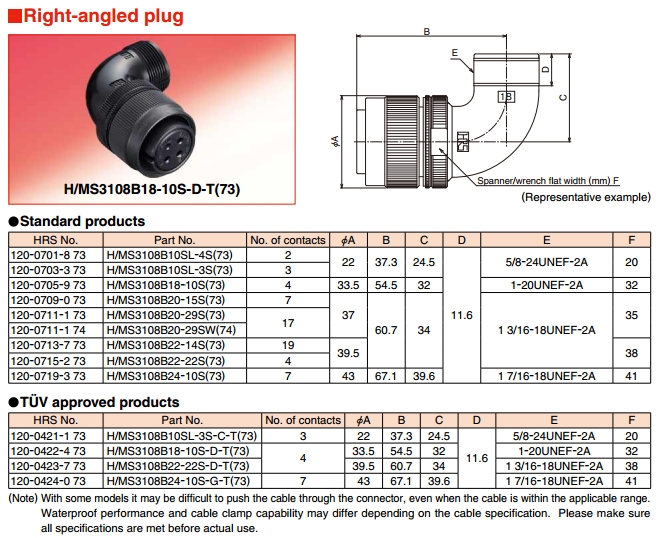 H/MS3108B10SL-4S,H/MS3108B18-10S,H/MS3108B20-29S,hirose連接器