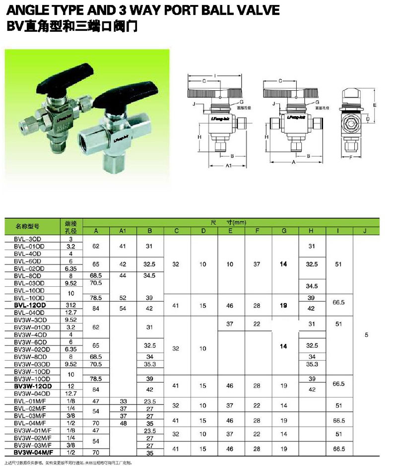 BVL-3OD,BV3W-01OD,BVL-04M/F,BV3W-01M/F,BVL-02OD,BV3W-8OD,直角型和三端口閥門
