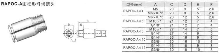RAPOC-A4,RAPOC-A6,RAPOC-A8,RAPOC-A10,RAPOC-A12,圓柱形終端接頭