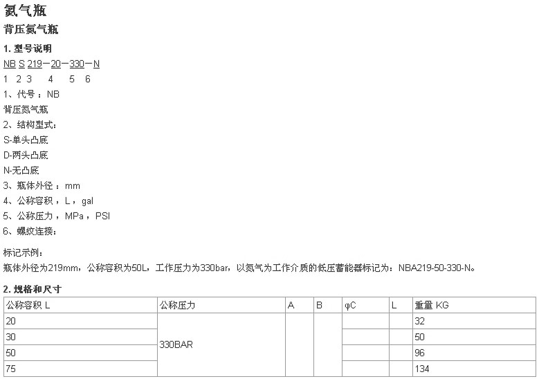NBS219-20-330-N,NBD219-30-330-N,NBS219-50-330-N,NBS219-75-330-N,氮氣瓶 |