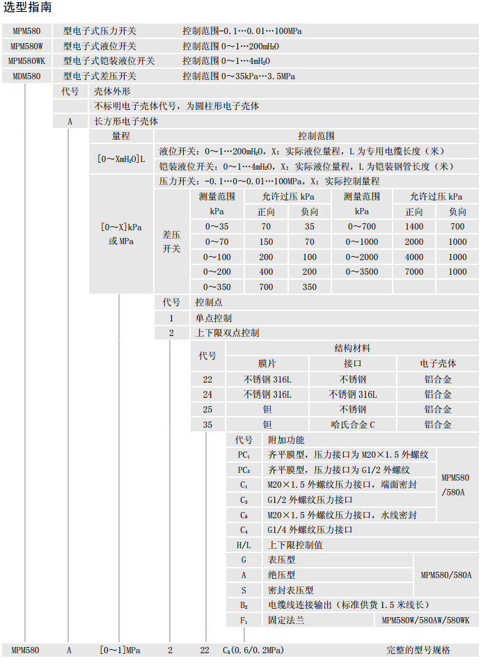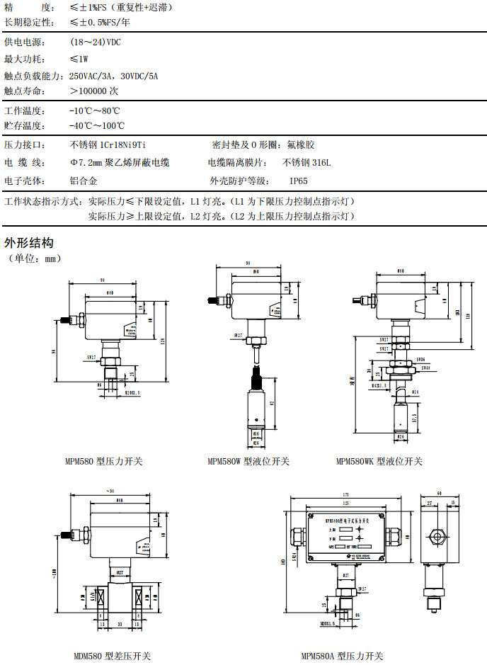 MPM580A,MPM580WA,MPM580WKA,MDM580A,液位開(kāi)關(guān)
