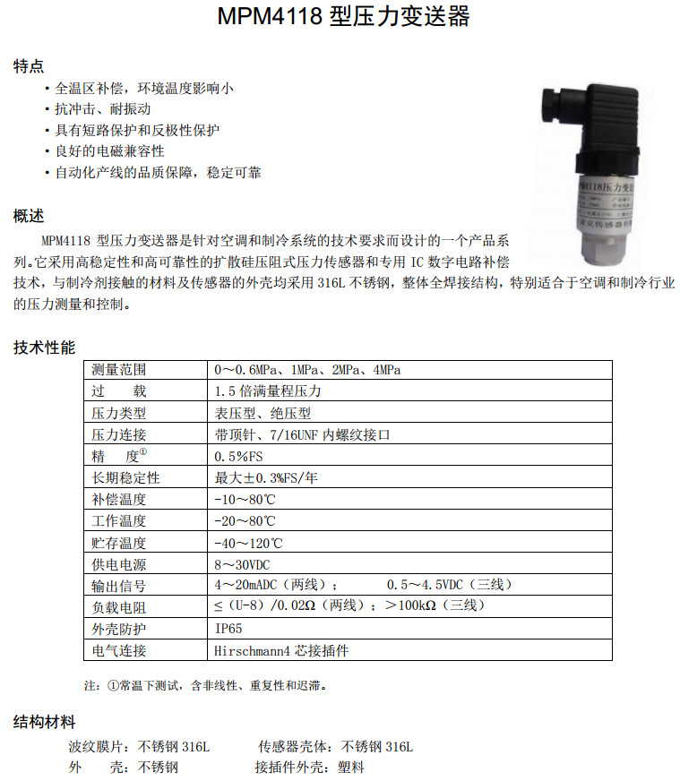 MPM4118-0E,MPM4118-0.6E,MPM4118-2E,MPM4118-2K,MPM4118-4K,壓力變送器 |
