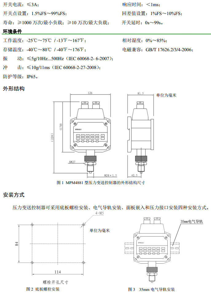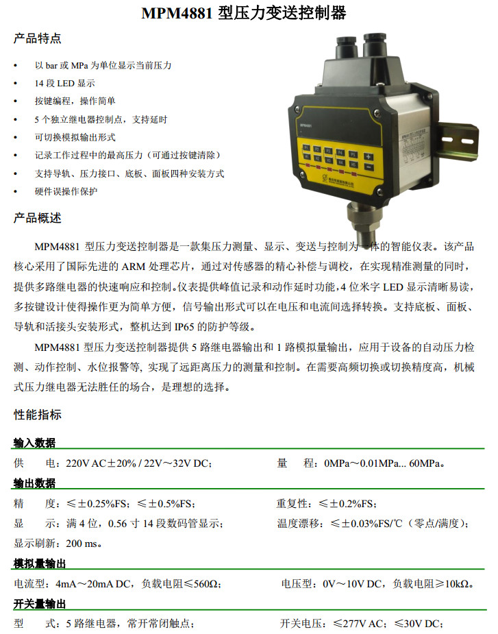 MPM4881-0AC,MPM4881-0.01AC,MPM4881-60AC,MPM4881-0DC,壓力變送控制器