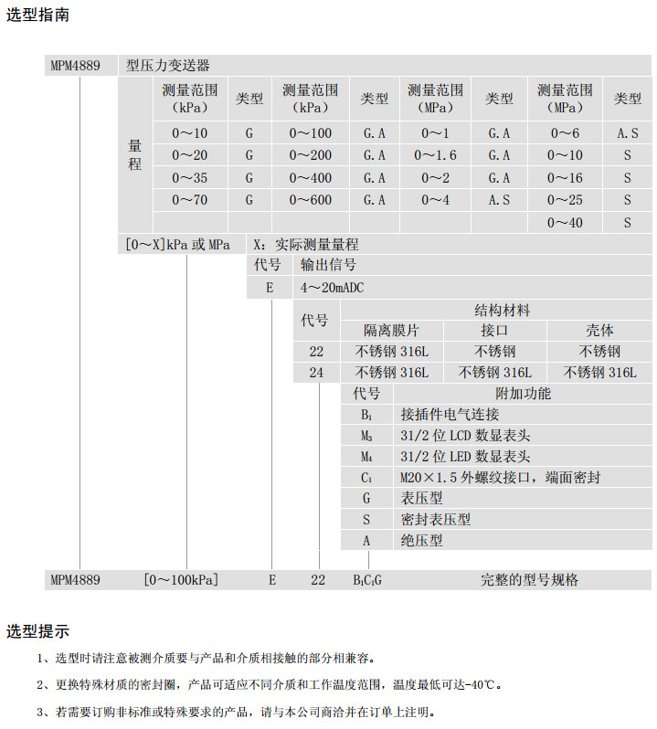 MPM4889-G,MPM4889-G.A,MPM4889-A.S,MPM4889-S,壓力變送器