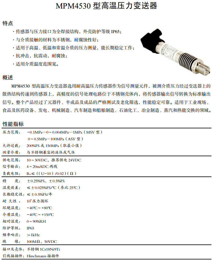 MPM4530-0.1,MPM4530-1,高溫壓力變送器