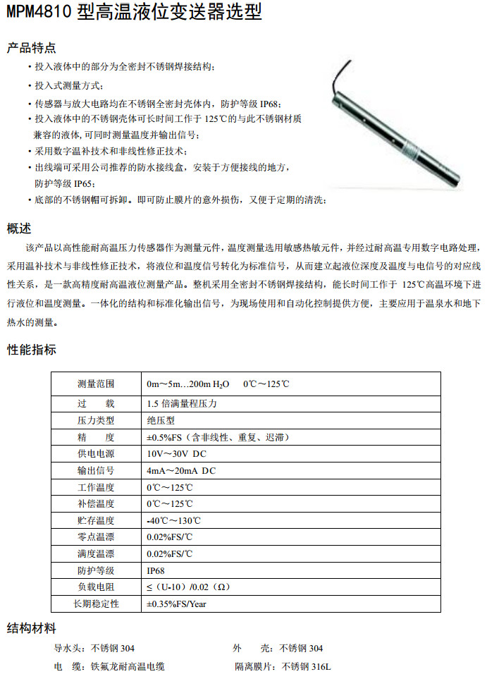 MPM4810-0,MPM4810-5,高溫液位變送器