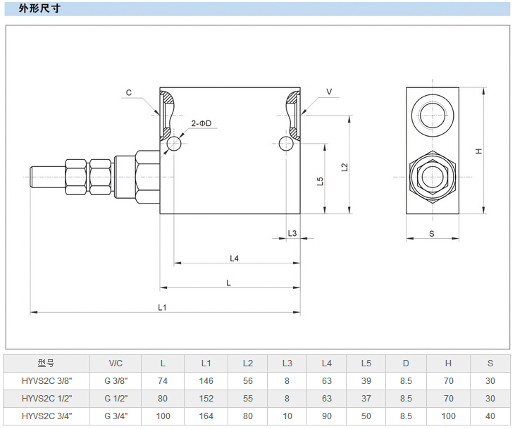 HYVS2C 3/8",HYVS2C 1/2",HYVS2C 3/4",