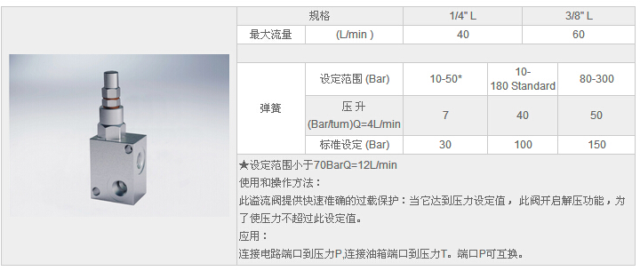 HYVMP 1/4" L,HYVMP 3/8" L,小流量溢流閥
