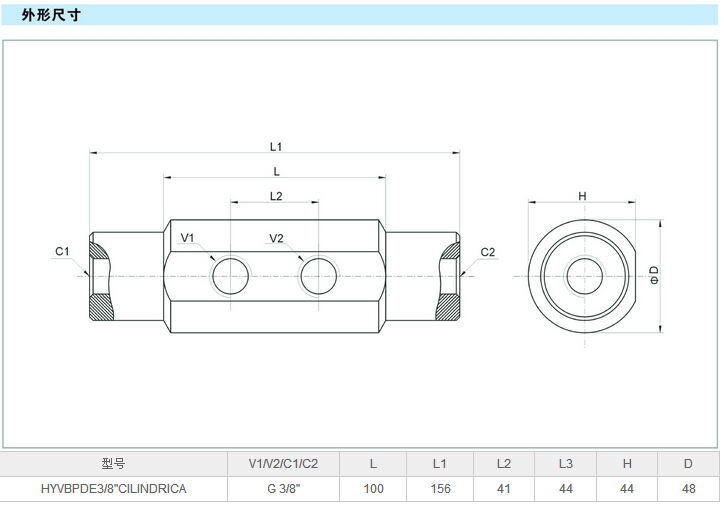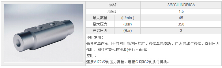 HYVBPDE3/8"CILINDRICA,圓柱式先導(dǎo)式雙單向閥