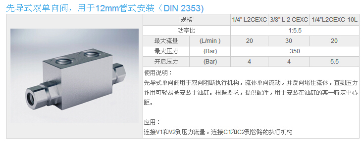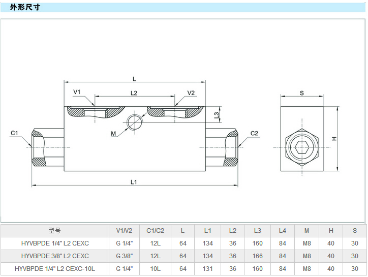 HYVBPDE 1/4" L2 CEXC,HYVBPDE 3/8" L2 CEXC,HYVBPDE 1/4" L2 CEXC-10L,先導式雙單向閥 |