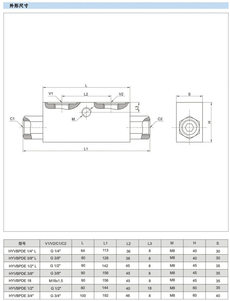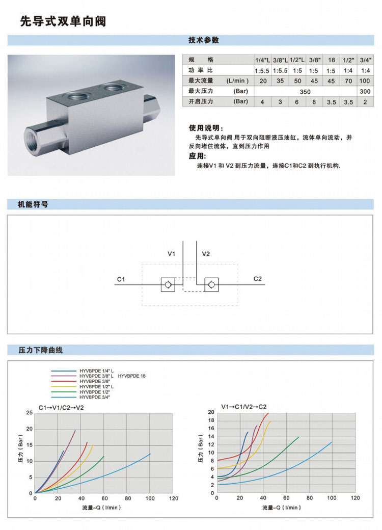 HYVBPDE 1/4" L,HYVBPDE 3/8" L,HYVBPDE 1/2" L,HYVBPDE 3/8",HYVBPDE 18,HYVBPDE 1/2",HYVBPDE 3/4",先導(dǎo)式雙單向閥