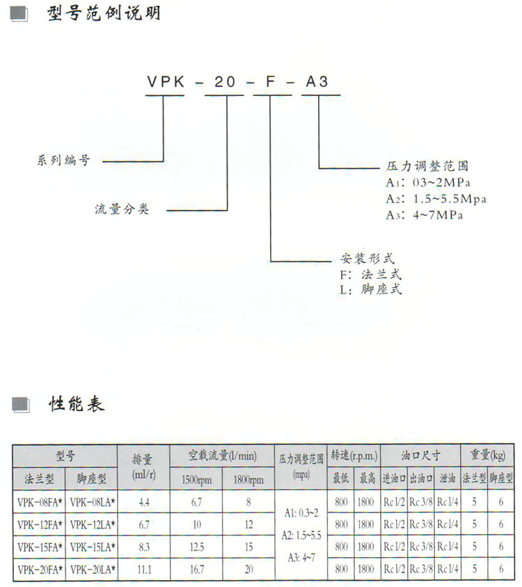 VPK-08FA1,VPK-12FA2,VPK-15FA2,VPK-20FA3,VPK-08LA3,VPK-08LA1,變量葉片泵