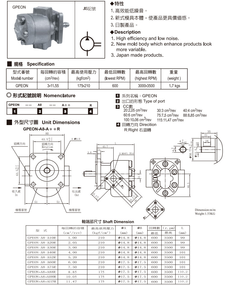 GPEON-A8-A10R,GPEON-A8-A20R,GPEON-A8-A30R,GPEON-A8-A40R,taicin齒輪幫浦 |