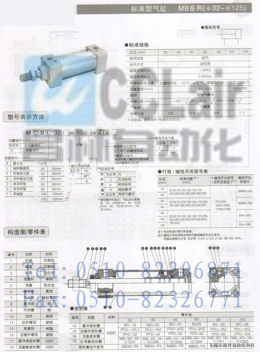 MDBB63-125,MDBB63-150,MDBB63-175,MDBB63-200,標(biāo)準(zhǔn)型氣缸,